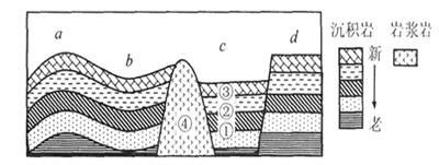读某地的地质构造示意图 完成题。小题1:c区域的地质构造名称为 ( )A.地垒B.地堑C.背斜