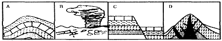 河流流出山谷,随流速减慢,可形成冲积扇地形,如下图。据此回答:小题1:沿C—D方向的剖面图可能是小题2:A—B方向的物质组成可能是A.黏土砾石粉砍B.粉