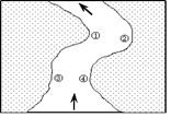如图为某河段示意图 箭头表示河流流向。读图回答问题。小题1:流水侵蚀作用最活跃的是( )A.①B