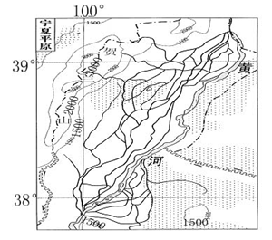 宁夏平原自古被称作“塞上明珠”,“其地饶五谷,尤宜稻麦,……,岁无旱涝之虞”。读图,回答问题11~14题。![]() 小题1:从外力作用看,宁夏平原的地貌类型是