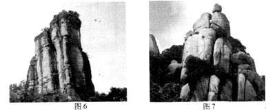武夷山属典型的丹霞地貌,是地质时期沉积的巨厚的红色岩层,经地壳运动和外力作用形成的一片红色群山。太姥山属典型的花岗岩地貌,是地质时期由岩浆上升冷凝而成的花岗岩,经地壳运动和外力作用而形成,花岗岩球状形态是其典型的地貌特征。图6为武夷山丹霞地貌景观图,图7为太姥山花岗岩地貌景观图。读图完成10-一12题。![]() 小题1:图6和图7岩石类型分别为 A.岩浆岩变质岩 B.沉积岩变质岩 c.沉积岩岩浆岩 D.变质岩沉积岩 小题2:形成图6山体陡峭特征的主要外力作用是