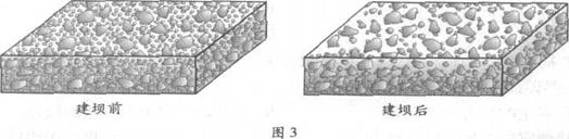 三峡大坝下游附近河床某测点,沉积物粒径的平均值比建坝前大(如图3示意),其成因是![]()