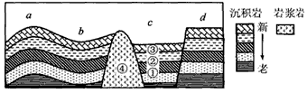 3、①②③④四处的岩层比较,年龄最轻的岩层是 |