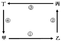 A、若该图表示的是海陆间水循环图,则甲地是海洋 B、若该图表示的是热力环流示意图,甲、乙为近地面,则乙地天气晴朗 C、若该图表示的是地壳物质循环示意图,乙表示岩浆,则丙是变质岩 D、若该图表示的是中低纬大洋环流示意图,则④为暖流 |