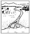 下图为地处北纬50°附近欧洲中部的某聚落局部地区示意图。读图,回答1—2题。1、图中[ ]A.河流形成与距今2300万年前B.①处经历了先侵蚀后沉积过程C.