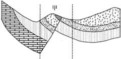 下图是我国某山脉东 西坡地质剖面图。读图回答下列各题。小题1:结合图例 推断甲处岩石形成时的古地理环