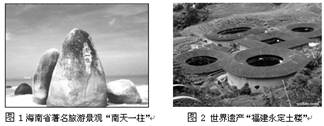 小题1:本题考查地貌的形成原因。海南省著名旅游景观“南天一柱”是海水的侵蚀地貌。选择A项。 小题2:根据土楼的建筑风格可知,选择一种既有利于家族团聚,又能防御战争的建筑。属于一种内敛的特点。选择C项。 |