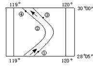 如图为某河段示意图 箭头表示河流流向。读图回答问题。小题1:流水侵蚀作用最活跃的是( )A.①B