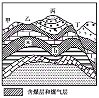 读某地地质构造剖面图 回答1—2题。 1 在a b两处采煤 最容易发生的矿难事故分别是 [