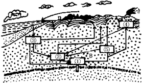 读地壳物质循环示意图 判断回答相关内容。(1)写出图中数字代表的地理含义:①__________ ②