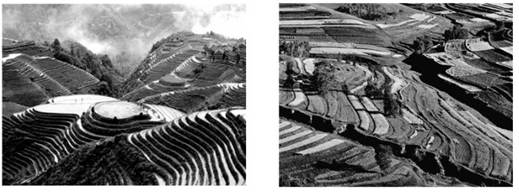 下图为桂林和张家口两地的梯田景观。关于两地叙述正确的是甲广西桂林的龙脊梯田 乙 河北张家
