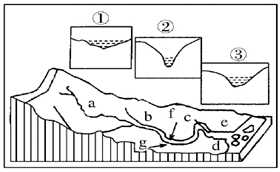 本题考查河流地貌。 小题1:河流自上游向下游,侵蚀越来越弱,而沉积逐渐加强,故河谷由深到 浅,选择D项。 小题2:A项a河段位于b河段上游,故沉积颗粒较粗;正确。 |