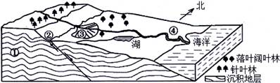 试题分析: 读图,①处岩层弯曲变形,是褶皱构造,岩层向上弯曲的部位是背斜,结构稳固,可以开挖隧道,A对。②处是断层构造,水库建设选择地址要避开断层,B错。③、④处都是冲积平原,主要是由流水沉积作用形成,C错。图中植被的变化是沿东西方向变化的,又不符合由沿海向内陆的地域分异规律,反映了地理环境垂直地域分异规律,D错。 |