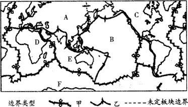 读六大板块分布示意简图 回答下列问题。(1)写出图中板块边界类型。 甲____________