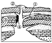 右下图为某地地质构造简图,读图完成下列小题。![]() 小题1:如果③是石灰岩,则④为
