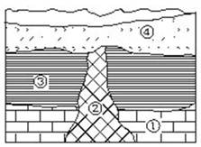 下图中岩层①②③④按由老到新的次序是A.①②③④B.①③②④C.①②④③D.①③④②
