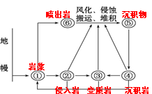 试题分析: 小题1:图中表示的地壳物质循环各环节如下图,花岗岩为侵入岩,片麻岩、榴辉岩为变质岩,分别是图中的②③,B对。 ![]() 小题2:黄山怪石为花岗岩垂直解理作用强,受外力作用形成(黄山山体主要由燕山期花岗岩构成,垂直节理发育,侵蚀切割强烈,断裂和裂隙纵横交错,长期受水溶蚀,形成瑰丽多姿的花岗岩洞穴与孔道,使之重岭峡谷,关口处处。前山岩体节理稀疏,岩石多球状风化,山体浑厚壮观;后山岩体节理密集,多是垂直状风化,山体峻峭,形成了“前山雄伟,后山秀丽”的地貌特征),“使天柱山超高压变质带暴露的地质作用相同”很明确告诉我们选C。 |