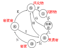腾冲位于云南省西部边陲,境内有97座火山群、62处地热泉,盛产翡翠玉石。下图为“岩石圈物质循环示意图”,数字序号表示岩浆、岩浆岩、变质岩、风化物、沉积物,字母表示各种地质作用。据此完成下列问题。![]() 小题1:腾冲的翡翠玉石是在变质环境中形成的。图中表示翡翠玉石及其形成过程的是: