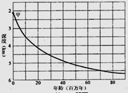 读海底深度与其岩石年龄关系图 回答下列各题。小题1:甲处的岩石类型和地形分别是A.变质岩海盆B.侵入