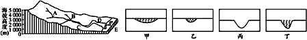 读图比较北半球某河源头附近A地和河流经过的B C D三地与甲 乙 丙 丁四幅剖面图 完成下列问题。(