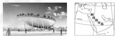 读下列图文资料,回答问题。 材料一 2010 年5 月1 日第41 届世界博览会在中国上海开幕。沙特阿拉伯展馆(见下左图)定名为“阿拉伯之城”,主题为“生命的活力”,其灵感来自于沙漠中的绿洲,主体建筑像一艘高悬于空申的大船,展馆着重展示在没有常年有水的河流和湖泊的严酷自然环境下,如何创建美丽的城市、营造美好的生活。 材料二 下右图是沙特阿拉伯及其周边地区的示意图。 ![]() (2)“能源之城”是沙特馆展示的特色之一,这里的“能源”是指___________。世博会开幕一个月后,一艘满载该种能源的轮船从波斯湾沿岸出发驶往上海,途经阿拉伯海时将_________(顺,逆)水航行。 (3)为什么沙特阿拉伯没有常年有水的河流和湖泊?沙特阿拉伯人民生活和生产用水的主要来源是什么 _______________________________________________________________ (4)试分析沙特阿拉伯发展绿洲农业的自然条件。 _______________________________________________________________ |
