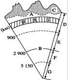 读地球内部圈层结构示意图 关于图中字母表示的含义 说法正确的是[ ]A D表示地壳