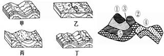 读“某地区地质地貌演变过程示意图”和“某地地层剖面示意图”。完成问题。![]() 小题1:图7表示演变过程的四个阶段,正确的时间顺序是