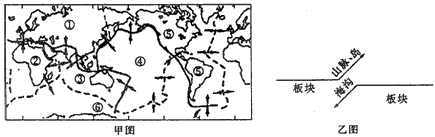 2、乙图属于板块交界处的一种类型,箭头表示板块的运动方向,下列说法正确的是 |