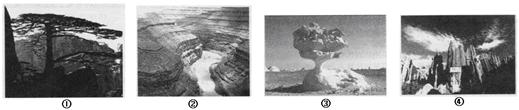 读四幅地貌景观图片 回答问题。小题1:关于构成①~④地景观的岩石及其岩性的叙述正确的是 ①景观中的岩