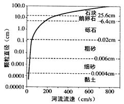 读图,完成问题。![]() 小题1:根据该关系图,河流能够搬运鹅卵石的流速至少是