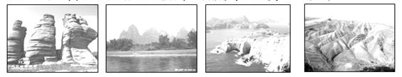 下述四个选项关于上面对应的四幅景观照片所反映的地貌类型正确的是![]()