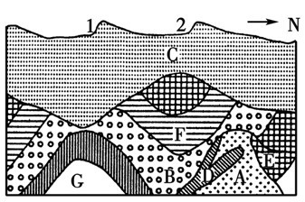 读某地地质剖面图 其中C为沉积物 B F G为沉积岩 A D为不同时期的岩浆岩 而且该地没有发生过地