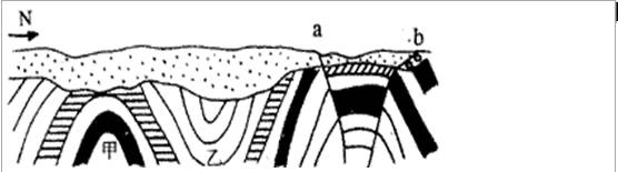 读下面“某地地质剖面示意图” 回答下列问题:(10分)(1)图中字母表示的地质构造是:甲______