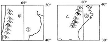 读图 回答下列各题。小题1:有关图中两山脉附近地区自然地理要素的叙述 正确的是A.甲 乙两山脉都处于