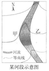 试题分析: 小题1:河流发生弯曲后,侵蚀堆积现象发生的规律是“凹岸侵蚀,凸岸堆积”,图中河段东岸乙处凸向河心为凸岸,发生堆积现象,西岸甲处现象,答案A错误,乙处发生堆积形成河漫滩平原,适宜人类居住,形成新的居民区,所以“数家新住处”应位于乙地,答案B正确,诗中叙述的情境“数家新住处,昔日大江流。 古岸崩欲尽,平沙长未休”是指河流的堆积和侵蚀,一般发生在河流的下游,而河流上游主要为侵蚀,堆积作用不明显,故答案C错误,图中等高线处发育河流,地形为河谷,等高线向北凸出,地势北高南低,河流应该是自北向南流,故答案D错误。 小题2:内力作用下使地貌变的高低不平,河流由高出流向低处,决定了河流的流向,故答案选A。 |