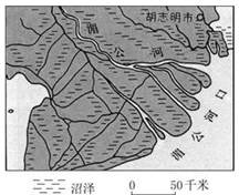 试题分析:据图可知:该地为湄公河三角洲,形成的主要地质作用是河流到了人海口,流速减慢,泥沙沉积,所以为流水沉积作用,D正确。 |
