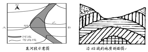 小题1:该处河流的侵蚀是惯性造成的,根据指北针,上北下南、左西右东。曲流的西岸甲处受侵蚀;“数家新住处”是由堆积作用形成的;诗中描述的情境一般发生在河流的下游;河流发育处等高线向高处凸出,河流流向为自北向南。 小题2:AB线上的地质构造为背斜,岩层向上弯曲。 小题3:背斜是良好的油、气储存构造;河谷主要是外力作用形成的;河流的流向是由高处流向低处,由内力作用形成;背斜处利于修筑隧道。 |