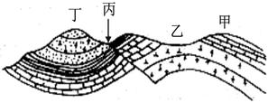 读某地地质构造图 回答下列问题。⑴丁处地质构造名称是 地形是