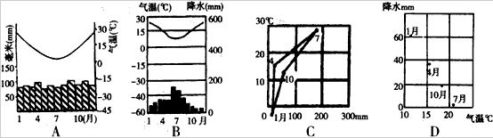 3、下列四图中,正确表示图中A处气候资料的是 ![]() |