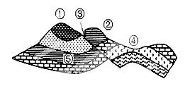 读“地质剖面图”,完成下列小题。![]() 小题1:图中①处山地的成因是