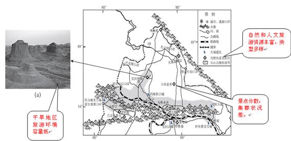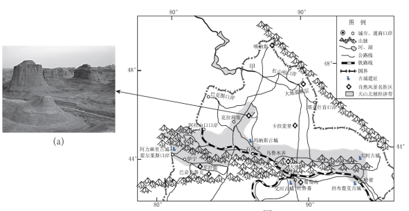 (36分)读新疆局部地区图,回答下列问题。![]() (1)指出图中甲河的主要补给类型及在我国境内的流向。(6分) 吐鲁番盆地最低海拔-154.3米,1975年夏季极端最高气温达49.6℃,被称为我国的“热极”。 (2)分析吐鲁番盆地成为我国“热极”的原因。(6分) 图(a)是乙地典型的地貌景观,其岩石有明显的层状结构。 (3)说明该地貌景观的形成过程。(6分) (4)评价图中所示地区旅游资源的开发条件。(10分) 《天山北坡经济带发展规划》于2012年11月获国务院正式批复。该经济带东起哈密,西至伊宁,通过与中亚和欧盟的合作,建立外向型加工基地。近年来,番茄制品、石化产品、太阳能发电设备等成为出口新的增长点,高新技术产品所占比重逐步增加。 (5)简述天山北坡经济带建立外向型加工基地的社会经济优势。(8分) |