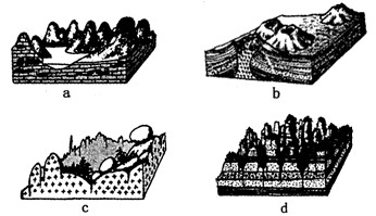 下图表示的是四种地貌景观。读图回答1—2题。1 表示花岗岩地貌景观的是[ ]A.a图B.b图