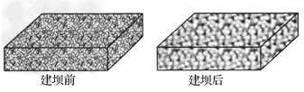 三峡大坝下游附近河床某测点,沉积物粒径的平均值比建坝前大(如图所示),其成因是 |