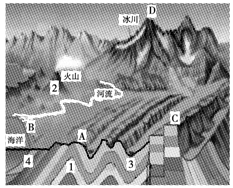 读某地地层剖面示意图,完成下列问题。小题1:图中各岩层的形成,按由先到后顺序排列正确的是A.③---②---①---④B.①---③---②---④C.②---①---③--