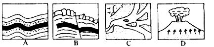 读地质构造或地貌景观图 回答1—2题。 1 四幅图主要由于外力作用形成的是学[ ]A ①④