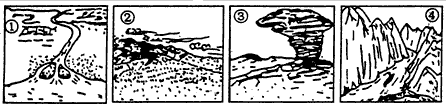 读下列四幅地貌景观图 判断1—3题。1 因侵蚀作用而形成的地貌是[ ]A ①② B ③④ C