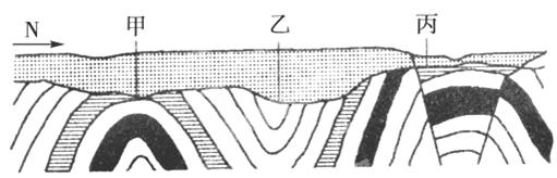 读某地的地质剖面图 回答下列问题。(15分)(1)写出图示地质构造类型:甲________ 乙___