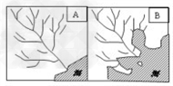 下图表示上图中乙河口地区的海陆变迁状况, 由A 演变到B 的原因可能是受![]() |