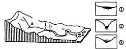 读下图 比较图中河流a b c三处的位置与三幅剖面图 回答:小题1:河流位置与断面对应关系正确的是A