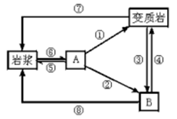 读“地壳物质循环简略示意图” 读图完成下列问题(7分)小题1:根据图中箭头的方向 将各数字所代表的地
